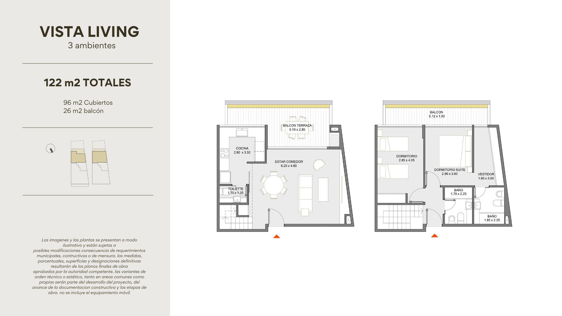 Los balcones aterrazados con parrilla, las proporciones generosas y la integración fluida entre interior y exterior permiten que la luz y el aire recorran cada ambiente con naturalidad. Las plantas están pensadas para ofrecer flexibilidad, amplitud y bienestar, con dimensiones que superan los estándares y una distribución que acompaña distintos estilos de vida.