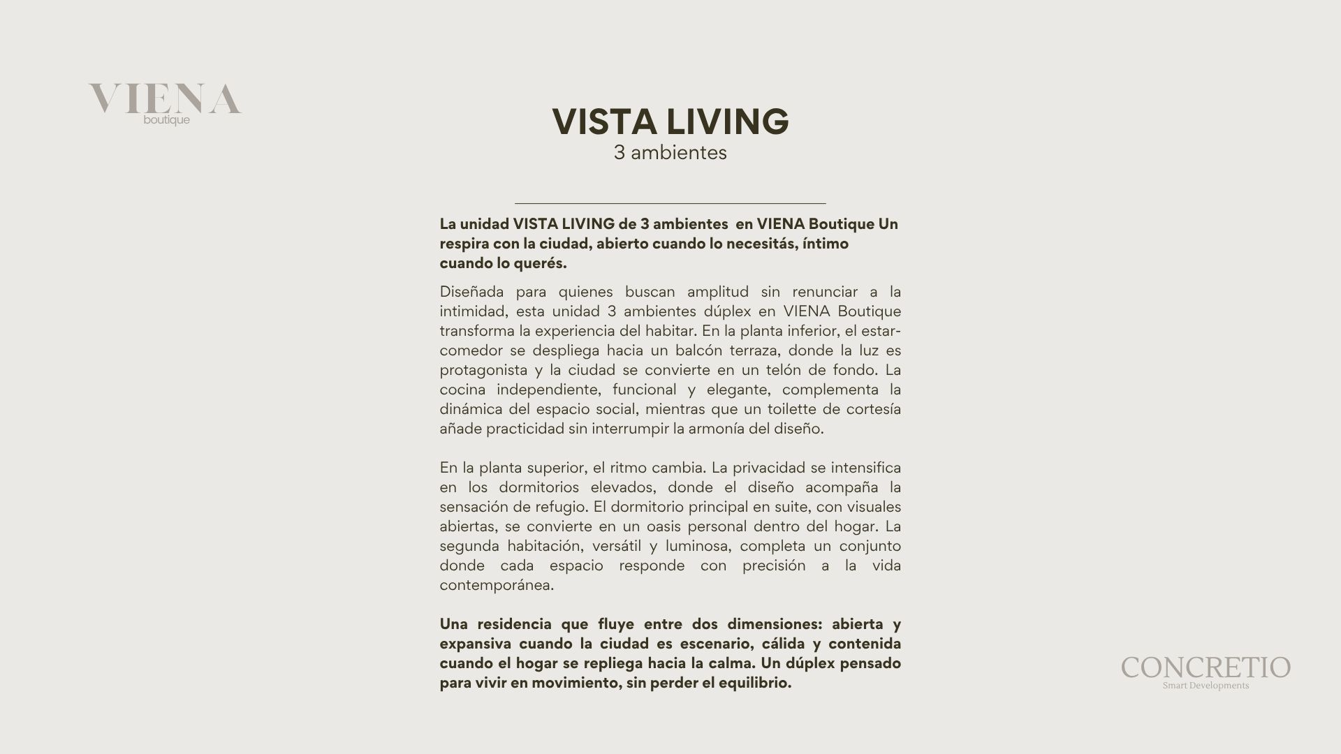 Cada residencia en VIENA Boutique se distingue por sus terminaciones de categoría y un diseño pensado al detalle, donde cada material, proporción y decisión responde a la sensibilidad de un proyecto boutique.